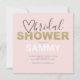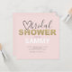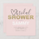 Este chá de panela quadrado moderno apresenta seu nome definido em uma fonte ousada e moderna com a palavra Bridal em tipografia de escrita caligráfica e Chá em dourado falso sobre um fundo cor-de-rosa pincelado com um coração bonito desenhado à mão. A placa de convite reverte para um plano de fundo rosa pálido e complementar. Uma escolha moderna para o seu Chá de panela Dia de os namorados ou pacote de convite Brunch. Para ver mais deste conjunto contemporâneo de artigos de papelaria, visite DotellABelle no Zazzle.