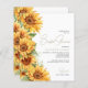 Na moda rustic farm house chá de panela party BUDGET barato cartão de convite do com modelo com grandes girassóis de ouro amarelo com folhagem verde e um moderno e elegante programa de caligrafia com letra manuscrita.++++++ Fácil de personalizar com seus detalhes! ++++++++++ O convite é adequado para chás de panela de na moda de outono ou de outono de outono de primavera de jardim, brunch ou festas de almoço.