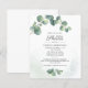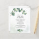 Chá de panela Verde Eucalyptus Watercolor Cartão de Convite com um fundo embutido e uma tipografia de tendência. Uma escolha excelente para um chá de casamento botânico. Personalize o modelo de texto fácil de usar com os detalhes do evento do chá clicando no botão "Personalizar" acima. Enquanto o texto "Bebê" estiver definido, o resto do texto a preto pode ser alterado para se adequar ao evento