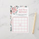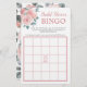 Este cartão de jogo de bingo chá de panela apresenta flores rosa poeirentas de cor d'água e folhagem de folha de eucalipto. Personalize a parte de trás do cartão com o nome da noiva. Produtos correspondentes disponíveis.