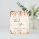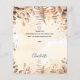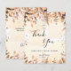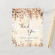 Um cartões de agradecimentos Chá de panela. Um fundo de cor aquosa de ouro decorado com ouro eucalipto e farelos de brilho dourado. Na frente, um grande script de cor preta, escrito à mão, e o texto: Obrigado, seu texto, título e uma data. Voltar: Personalize e adicione seu nome e nota de agradecimento.