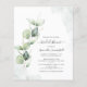 Chá de panela de aquarela Eucalyptus Script Floral Invitation com um moderno design botânico minimalista em fundo branco com tipografia popular, você pode facilmente editar DICA: Veja abaixo outros itens de eventos de preparação de casamento e pré-casamento, incluindo convites de chá de panela, cartas de agradecimento, etiquetas de champanhe, etc. para este design!