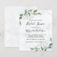 Convide amigos e família a honrarem a noiva a ser com este Chá de panela barato com folhas de cor aquática de eucalipto contra fundo de mármore. Observe que nosso intervalo de convites orçamentários não inclui envelopes. Você pode pedir separadamente através de nossa loja, ou de sua loja de suprimentos favorita.