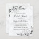 Convide amigos e família a honrarem a noiva a ser com este Chá de panela barato com folhas de cor aquática de eucalipto contra fundo de mármore.