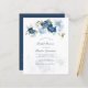 Personalize este cartão de convite de orçamento de chá de panela clicando no botão "Personalizar" acima. A carta apresenta um moderno e elegante chic com flores azuis empoeiradas, de cor branca, azul claro e verde-oliva. TIP: Excelente para festas surpresa, chás de fraldas, recepções de casamento e festas de aposentadoria.