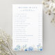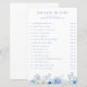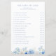 Esta folha de jogos "ele disse que ela disse" apresenta uma borda floral de aquarela com flores elegantes em vários tons de azul - perfeita para o tema "Algo Azul Antes de Eu Fazer".