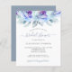 Chá de panela floral pastel moderno e elegante com flores bonito, azuis, reborda com folhagem em fundo branco. OBSERVE que as cores e fontes do plano de fundo e do script são editáveis. Você pode alterá-las depois de selecionar o botão PERSONALIZAR. +++++++++++ Ideal para uma festa de chá de panela floral de quintal de jardim floral de boêmia de primavera de tendências. +++++++++ LEIA ISTO ANTES DE COMPRAR! Este é um cartão de casamento de barato orçamentário impresso em uma folha de papel (cada folha tem um cartão). +++ Para obter a melhor qualidade de preço, nosso conselho é escolher o tipo de papel Semi-Gloss (é espesso o suficiente para ser usado para papelaria) +++ Se você precisar de envelopes, escolha a OPÇÃO ENVELOPE. ++ Verifique duas vezes todas as informações e a ortografia do seu texto porque você receberá exatamente o que você vê - ninguém mais verificará nada antes de imprimir. +++ Esta placa foi projetada para o tamanho de 4,5" x 5,6". Caso você escolha outro tamanho do cartão e o texto saia da página, tudo precisa ser corrigido antes de adicionar o produto ao carrinho. Peça ajuda ao Serviço de Design ao Vivo.