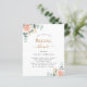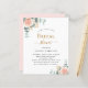 Um fundo branco chic. Decorados com ouro-rosa e flores cor-de-rosa, flores rosa e folhas de eucalipto, borras, verde e borras de ouro. Personalize e adicione o nome da noiva a ser e os detalhes da festa. Letras pretas e ouros coloridas. Traseira: cor de fundo rosa dourada. 1 folha = 1 convite impresso de borda a borda.