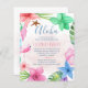 A praia oceânica moderna, aloha havaiana, destino do chá de panela do barato BUDGET, apresentando uma coroa colorida de flores de hibisco com folhas tropicais, uma estrela, um pássaro flamingo rosa sobre um fundo rosa-claro-rosado. +++++++++ O convite é adequado para o verão aloha, litoral, oceano, praia, destino sazonal pelas festas de casamento no mar. ++++++++++++++++++++++++ LEIA ISSO ANTES DE COMPRAR! Este é um cartão de casamento de barato orçamentário impresso em uma folha de papel (cada folha tem um cartão). +++ Para obter a melhor qualidade do preço do rascunho, o nosso conselho é escolher o tipo de papel Semi-Gloss (é suficientemente grosso para ser usado para papelaria) +++ Se você precisar de envelopes, escolha a OPÇÃO ENVELOPE. ++ Verifique duas vezes todas as informações e a ortografia do seu texto porque você receberá exatamente o que você vê - ninguém mais verificará nada antes de imprimir. +++ Esta placa foi projetada para o tamanho de 4,5" x 5,6". Caso você escolha outro tamanho do cartão e o texto saia da página, tudo precisa ser corrigido antes de adicionar o produto ao carrinho. Peça ajuda ao Serviço de Design ao Vivo.