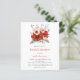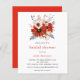 Chá de panela de Florais de Creme Vermelho. Um alternativo de 4,5 pol x 5,6 pol com preço inferior. Disponível em um STOCK DE CARTÃO SEMI-GLOSS 110 lb, que é a opção padrão (mais espesso para convites), OU um STOCK de PAPEL THINNER FINISH 80 lb FINISH (ideal para gabinetes). Os envelopes são um extra opcional e são ligeiramente maiores que o tamanho da placa. Um buquê de florais e folhagem está no topo e a tipografia do na moda está abaixo, que é facilmente personalizada para os detalhes do seu Chá de panela. Um fundo vermelho coordenado está atrás.