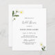Elegante chá de panela de orçamento floral com um layout simples que apresenta margaridas brancas pintadas por aquarela no canto superior esquerdo e canto inferior direito juntamente com "Chá de panela" em um lindo roteiro manuscrito. As costas têm uma pequena coroa floral com o seu dentro de monograma. Este chá de panela moderno com flores margaridas é excelente para um chá de panela ou primavera de verão.