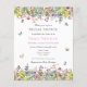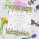Boêmia, moderna e elegante, este chá de panela apresenta campos brilhantemente coloridos de flores silvestres delicadas com borboletas, espécimes do gênero Bombus spp. e joias-frade. Você pode personalizar todos os detalhes de texto e posicionamento gráfico de acordo com suas necessidades específicas.