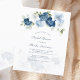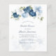Personalize este cartão de convite de orçamento de chá de panela clicando no botão "Personalizar" acima. A carta apresenta um moderno e elegante chic com flores azuis empoeiradas, de cor branca, azul claro e verde-oliva. TIP: Excelente para festas surpresa, chás de fraldas, recepções de casamento e festas de aposentadoria.