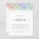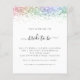 Um valor para o alternativo do ORÇAMENTO em tamanho menor de 4,5 x 5,6" de semirbrilho de 110 lbs, que é de espessura semelhante a um cartão postal (no entanto, não é adequado para uso como cartão postal). POR FAVOR, OBSERVE QUE HÁ UM convite por folha. Chá de panela da Largura Arco-Íris. Uma borda de falso brilho multicolorido está em cada lado na parte superior e Bride to Be está em um roteiro elegante com supressões. Personalize facilmente o texto para seus próprios detalhes.