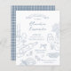 Este convite para o orçamento de chá de panela é decorado com uma cena ilustrada manualmente de uma celebração bridal. Amigos estão brinchando à noiva-a-ser, um vaso de flores, velas vintage, um arco caprichoso, um conselho charcuterie, uma comida ao estilo mediterrânico espalhada por influência francesa e italiana, pão recém assado e uma faixa elegante de fita. A ilustração é um estilo de rabiscar caprichoso. Escolhemos uma cor azul empoeirada, mas vocês podem mudar todas as cores desta design, incluindo a ilustração. Como parte da seleção orçamentária no Zazzle, esta folha não é um tamanho de convite padrão ou qualidade de papel. Se quiser que este design num cartão de convite o encontre na coleção ou utilize o Zazzle Make Machine para o transferir para o produto da sua escolha. Visualize a coleção vinculada nesta página ou visite nossa loja para obter mais designs de chá de panela.
