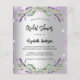 Um convite para chás na moda birdal moderno. Um fundo de aparência pura prateada com brilho violeta, faíscas, flores de lavanda, flores e verde de eucalipto. Personalize e adicione o nome e os detalhes da festa.