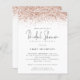Um valor para o alternativo do ORÇAMENTO em tamanho menor de 4,5 x 5,6" de semirbrilho de 110 lbs, que é de espessura semelhante a um cartão postal (no entanto, não é adequado para uso como cartão postal). POR FAVOR, OBSERVE QUE HÁ UM convite por folha. Chá de panela de brilho Dourado rosa. Uma borda de brilho dourado rosa está em cada lado e Chá de panela em um script de estilo de escrita manual definido. Personalize facilmente o resto do texto para seus próprios detalhes. Você também pode alterar as cores do texto e do plano de fundo por meio da opção personalizar mais, se desejar.