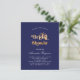 Um clássico fundo azul marinho. O chá de panela está escrito em ouro falso. Personalize e adicione um nome e detalhes da parte.