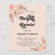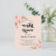Para um chá de panela moderno estilo boho. Um fundo rosa dourado. Decorados com ouro rosa e flores cor-de-rosa, rosas, grama pampas e Personalize e adicione um nome e detalhes da parte. Fundo: rosa dourado.