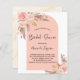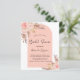 Para um chá de panela moderno. Um quadro de arco, branco e rosa dourado como fundo. Decorados com ouro rosa e flores, rosas e erva-pampas cor-de-rosa. Personalize e adicione um nome e detalhes. Traseira: impressão de mármore rosa de ouro leve.