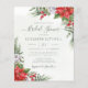 Belo chá de panela de barato com ilustrações botânicas a aquarela pintadas à mão de flores de poinsettia, verde de inverno, ramificações de pinho e espadilha e bagas. Escolha perfeita para casamentos de Natal.