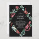 Este Convite Simples de Casamento Floral Elegante Escuro Escuro - apresenta texto branco escrito à mão e texto elegante com rosas vermelhas chic escuras e verde esmagador. O reverso do convite é preto lacônico. Faça seu casamento expressivo e memorável com esta coleção de tendências escuras.