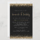 Dourado Glitter Brunch Chá de panela Negro. Um tamanho maior de 5,5" x 8,5" a um preço orçamentário, em um STOCK CARD SEMI GLOSS de 110 lb, excelente de convites, aproximadamente na mesma espessura de um cartão postal, ou um estoque LINEN elegante de 110 lb - para um luxo, ligeiramente mais fino, com um valor de excelente. OBSERVE QUE OS ENVELOPES OPCIONAIS SÃO UM POUCO MAIORES EM TAMANHO A 6,75" x 9" aprox. Este alternativo de tamanho de orçamento também está disponível em outras opções de papel. O papel FELT de 100 lbs é colorido por buff, NÃO branco, então adiciona um toque rústico. O estoque de papel MATTE de 80 lb é branco brilhante, para impressão nítida, excelente para seus menus e programas, enquanto o papel SATIN de 80 lb é fino e leve, ideal para gabinetes. Bordas no topo e no fundo em cada lado com brilho de ouro. Brunch & Bubble é definido em um estilo manuscrito elegante. Personalize facilmente o resto do texto para você.