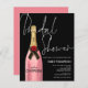 Um preço orçamentário menor, alternativo de papel de 4,5" x 5,6". Não inclui envelopes, mas há uma opção para adicioná-los, se desejar. Preto clássico e cor-de-rosa para este design feminino com chá de panela em um roteiro de estilo manuscrito em branco, e uma garrafa de champanhe cor-de-rosa no lado esquerdo, com a tipografia se sobrepondo ligeiramente e um fundo rosa coordenador também no outro lado. Personalize facilmente o resto dos detalhes. Você também pode alterar as cores do texto e do plano de fundo em ambos os lados, se desejar através da opção Personalizar mais.