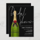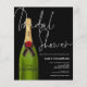 Um preço orçamentário menor, alternativo de papel de 4,5" x 5,6". Não inclui envelopes, mas há uma opção para adicioná-los, se desejar. Preto clássico para este design na moda com chá de panela em um roteiro de estilo manuscrito em branco, e uma garrafa verde de champanhe no lado esquerdo, com a tipografia se sobrepondo ligeiramente e um fundo preto também no outro lado. Personalize facilmente o resto dos detalhes. Você também pode alterar as cores do texto e do plano de fundo em ambos os lados, se desejar através da opção Personalizar mais.