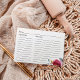Espessura de 18 pt / Gramatura de 120 lb. Branco suave, textura delicada.