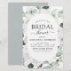 As rosas brancas florais e Eucalyptus botanical Greenery Primavera ou Convites de chá de panela de Casamento de Verão - incluem uma bela e elegante tipografia escrita com flores botânicas tropicais modernas e verde para a celebração especial do dia do casamento.