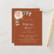 Fundo laranja queimado. Decorados com ouro-rosa e folhas de eucalipto cor-de-rosa-esbranquiçada, flores de rosa e cor-de-rosa-esbranquiçada, galhos, verde-verde e um cinzeiro de ouro falso. Personalize e adicione o nome da noiva a ser e os detalhes da festa. 1 folha = 1 convite impresso de borda a borda.