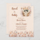 Um convite moderno, na moda e glamouroso para um Chá de panela de bolinho. Creme, fundo colorido de pêssego, decorado com uma cesta de flautas, frascos de vinho espumante e beige, flores coloridas de creme. O nome é escrito com um moderno estilo escrito à mão. Personalize e adicione os detalhes da sua festa. 1 folha = 1 convite impresso de borda a borda.