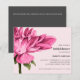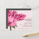 Atordoamento e Chá de panela Elegante, com uma magnífica Flor Dahlia em flor na paleta aquosa de ricas nuances cor-de-rosa e folhas verdes à esquerda da carta. Os detalhes do seu partido são graciosamente exibidos à direita, em uma combinação chic de fontes em negrito e serif na cor clássica da cinza. Placa inversa em uma cor de cinza contrastante com espaço para texto extra como registro, site, hospedado por ou outras informações úteis. Muito fácil de personalizar usando o modelo. NOTE: OS ENVELOPES SÃO NOTA INCLUÍDA.