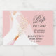 Estas etiquetas de vinho espumante cor-de-rosa cinza apresentam uma garrafa de vinho espumante cor-de-rosa que pulveriza sequelas de ouro e uma noiva no seu vestido e no véu que segura uma taça de vinho espumante com os seus pormenores em letra chic. CORRESPONDENTE a itens na nossa coleção.