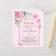 Um fundo cor-de-rosa com um arco cor-de-rosa. Decorados com um verde-floral, rosa, de cor verde, verde-aquoso de eucalipto e borboletas. Personalize e adicione o nome da noiva a ser e os detalhes da festa. 1 folha = 1 convite impresso de borda a borda.