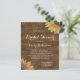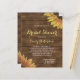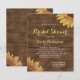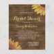 Este chá de panela apresenta um par de girassóis amarelos em um fundo de madeira marrom rústica moldando o texto branco, com as palavras "Chá de panela" e o nome da noiva em letra amarela. Ideal para um chá de panela russo do país.