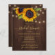 Chá de panela de convite para na moda de barato da festa chic country rustic country em um fundo de madeira marrom apresentando um buquê de girassóis dourados amarelo e um roteiro elegante de caligrafia dourada.+++++++++++Fácil de personalizar com seus detalhes! Você pode personalizá-lo alterando ainda mais as fontes e as cores das letras. +++++++++ O convite é adequado para as festas de verão ou outono ao ar livre, jardim, fazenda, celeiro, chás de panela de países rústicos no quintal, brunch ou almoço. +++++++++ LEIA ISTO ANTES DE COMPRAR! Este é um cartão de casamento de barato orçamentário impresso em uma folha de papel (cada folha tem um cartão). +++ Para obter a melhor qualidade de preço, nosso conselho é escolher o tipo de papel Semi-Gloss (é espesso o suficiente para ser usado para papelaria) +++ Se você precisar de envelopes, escolha a OPÇÃO ENVELOPE. ++ Verifique duas vezes todas as informações e a ortografia do seu texto porque você receberá exatamente o que você vê - ninguém mais verificará nada antes de imprimir. +++ Esta placa foi projetada para o tamanho de 4,5" x 5,6". Caso você escolha outro tamanho do cartão e o texto saia da página, tudo precisa ser corrigido antes de adicionar o produto ao carrinho. Peça ajuda ao Serviço de Design ao Vivo.