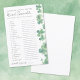 Sorte em Ruas de Amor. Jogo de Palavras de Chá de panela do Dia de Patrick. Celebrar a noiva a ser com esta atividade divertida e festiva, perfeita para uma Rua. chá de panela do Dia de Patrick. O jogo apresenta uma lista de palavras clássicas de casamento embaralhadas à esquerda com linhas de vazio ao lado de cada uma para os convidados escreverem em suas respostas. Uma coluna de moléculas de aquarela em tons verdes variados corre pelo lado direito, adicionando um toque lúdico e espirituoso. O design usa uma mistura de elegante script manuscrito e fontes serif limpas para um layout charmoso e fácil de ler. Uma chave de resposta está incluída na galeria de fotos para conveniência. Totalmente personalizável, você pode ajustar o texto, as fontes e as cores para ajustado o estilo do seu evento. Esta atividade é uma maneira alegre de brindar a "Lucky in Love" com a noiva a ser!