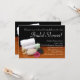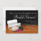 Convites de chá de panela Spa perfeitos para uma festa de mani ou noite de folga. Spa elegante, terapia de massagem ou configuração de salão. A cena da vida estática inclui artigos que seriam usados para tratamento de termas, incluindo sais minerais de banho impregnados, óleos corporais perfumados ou naturais, pedras quentes para massagem aquecida, toalhas brancas limpas e uma flor rosa bonito, em uma mesa de madeira com fundo preto. Aproveite o dia de relaxamento de uma chá de panela e luxo de spa tranquila, pedicura e serviços faciais. Este design está disponível como uma coleção completa, incluindo itens de promocional de negócios, artigos de papelaria, cartões de visitas, material de consumo, software e muito mais!