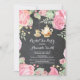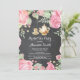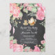 Convite de festas de chá chá de panela. Flor Floral Cor-de-Água Rosa. Fundo Chalkboard. Convite para Chá de chá de noiva. Rosa chique. Vintage. Retro. Fundo Rustic Wood. Para mais personalização, clique no botão "Personalizar" e use nossa ferramenta de design para modificar este modelo.