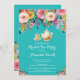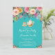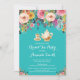 Chá de panela Convite de festas de chá. Flor Floral Cor-de-Água Rosa. Convite Para Chá De Chá. Rosa Chique. Vintage.Retrô. Fundo do Teal Turquoise Aqua.