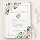 Chá de panela Tea Party Watercolor White Floral e Silver Invite - Script Rosa-Rosa
