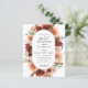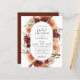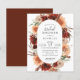Este convite aterrorizado apresenta uma pequena estrutura floral constituída por terracotta e flores burgundy com folhas de bege seco e galhos enterrados. O lado inverso do convite à noiva é o terracota. Observe que os envelopes NÃO estão incluídos neste design. Se precisar de envelopes, verifique nossa coleção ou adquira-os separadamente do mercado.
