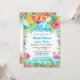 Possui flores tropicais brilhantes de hibisco, flamingos divertidos e personalizados com suas informações. Acessórios tropicais correspondentes disponíveis. Design ©Rosalind Moore, Design de Cherry Lane.