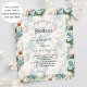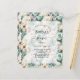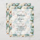 Flores verdes e brancas poeirentas como fundo. Personalize e adicione um nome e detalhes da parte.