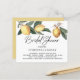 Verde elegante, limões e flores brancas criam um arranjo elegante no topo desse chá de panela.