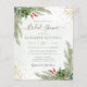 Belo chá de panela de barato com ilustrações botânicas a aquarela pintadas à mão de áreas verdes de inverno, pinheiro e espadilha, cones e bagas ocas com brilho dourado. Escolha perfeita para casamentos temáticos de inverno ou Natal.