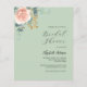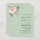 Um fundo verde sábio. Decorados com ouro-rosa e folhas de eucalipto cor-de-rosa-esbranquiçada, flores de rosa e cor-de-rosa-esbranquiçada, galhos, verde-verde e um cinzeiro de ouro falso. Personalize e adicione o nome da noiva a ser e os detalhes da festa. 1 folha = 1 convite impresso de borda a borda.