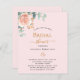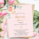 Um fundo rosado feminino. Decorados com ouro-rosa e folhas de eucalipto cor-de-rosa-esbranquiçada, flores de rosa e cor-de-rosa-esbranquiçada, galhos, verde-verde e um cinzeiro de ouro falso. Personalize e adicione o nome da noiva a ser e os detalhes da festa. 1 folha = 1 convite impresso de borda a borda.